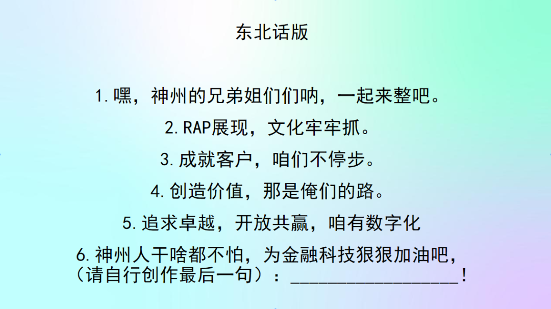 你对神州信息的新文化价值观熟悉吗?来来来,欢迎来参加神州Rapper挑战赛!让我们用最嗨皮的方式说出我们对神州信息新文化的理解。速度为王,又快又好!